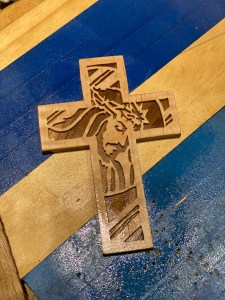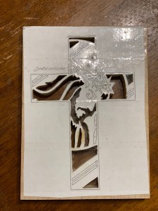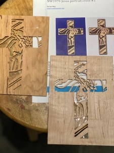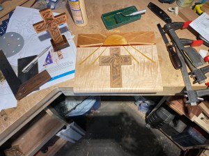 Next we started exploring the options a fretwork cross would allow, and started carving out each sun ray.