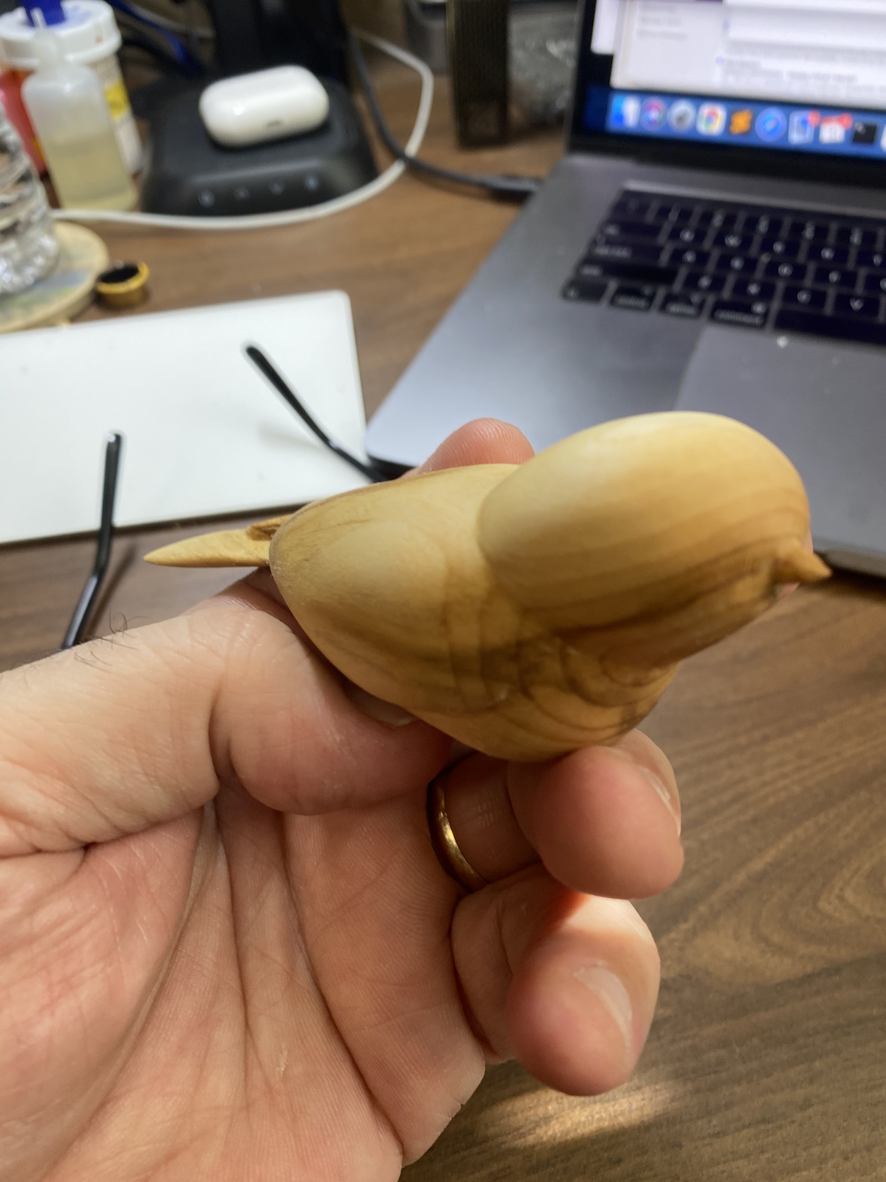 I have been thinking about carving for quite a long while, with most of my attention focused more on relief carving. The idea being that I could put relief style carvings into the lids of the boxes I make. I was recently intrigued by a carving kit I saw on Amazon, and doing a little research found that there is an idea of “Comfort Birds”. There is an article that describes a gentleman thats been creating and providing them to folks that are grieving or experiencing some loss or other hardship. I was struck by this statement “For many, the small birds serve as tangible reminders that someone loves and cares about them.“. What a terrific idea to help someone in need!